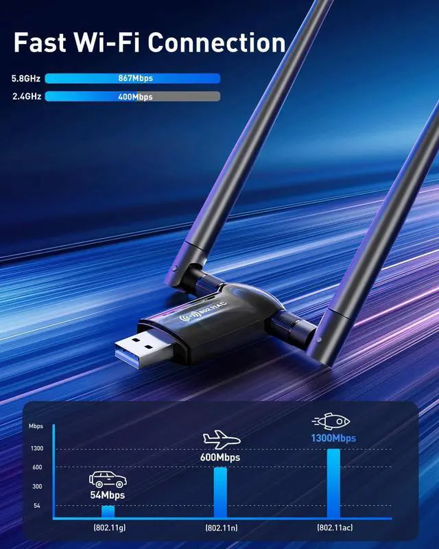 867Mbps on the 5.8GHz band and 400Mbps on the 2.4GHz band. 802.11ac wi-fi Technology ensure a seamless experience for HD streaming, video meetings, movies, and fast download,Reduce lag and improve wifi speed.