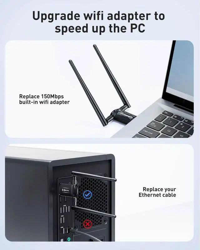 If you feel built-in wifi adapter is slow or connect desktop to wireless router or want to upgrade to the latest wifi standard on desktop or laptop.you will get wifi connected speeds up to 866Mbps on 5Ghz network,and 574Mbps on 2.4Ghz Network by it