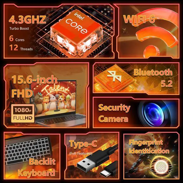 Multiple Ports: With 2 x USB3.2, 1 x USB2.0, 1 × Type-C, Standard Size HD, Headphone Jack, Micro SD, you can easily connect all your peripherals and devices to our laptop.