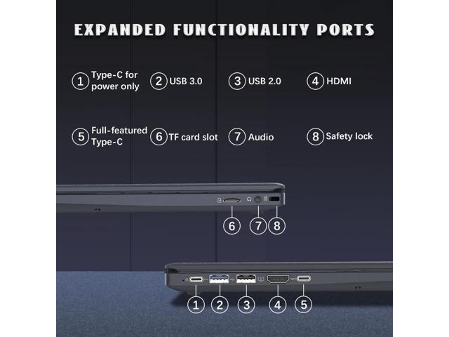 - Notebook include multifunctional interface:mini HDMI x1, 3.5mm Audio jack x1, USB 3.0 port x1,USB 2.0 port x1,Type-C PD×1,TF slot x1.