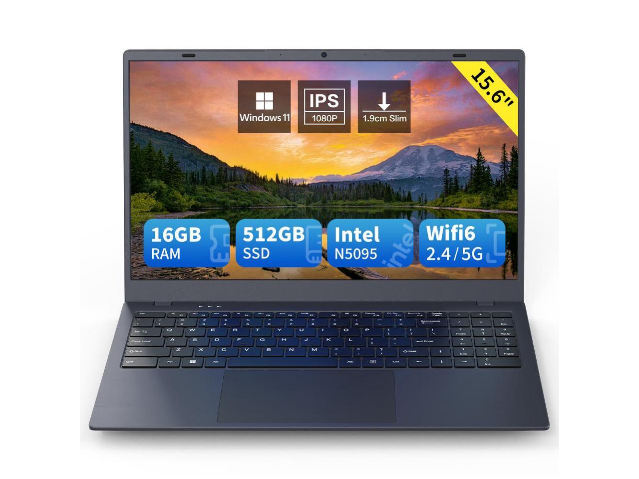 Ningmei NL100P Laptop Computer, 15.6 Inch Notebook with Intel Quad-Core N5095(Up to 2.9GHz), 16GB DDR4 512GB SSD, BT5.2, 5G WiFi, USB3.2, Type_C, Webcam, Long Battery Life