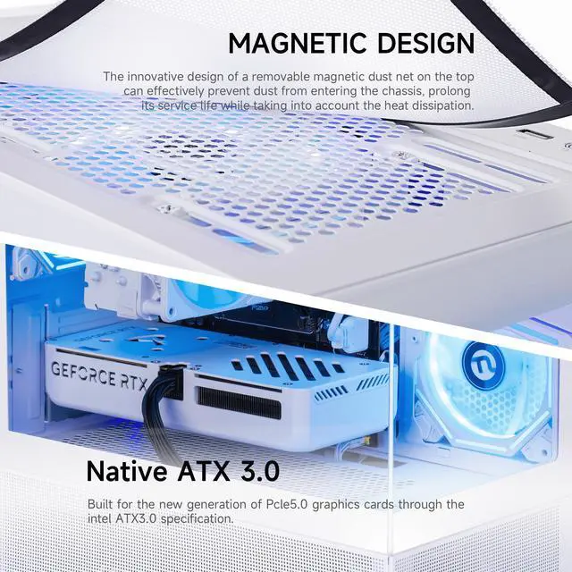 Cooler & Power:ARGB colorful air cooling PC & 7 ARGB System Color Adjustable Ring Fans 850W 80+ Bronze Certified Power Supply.