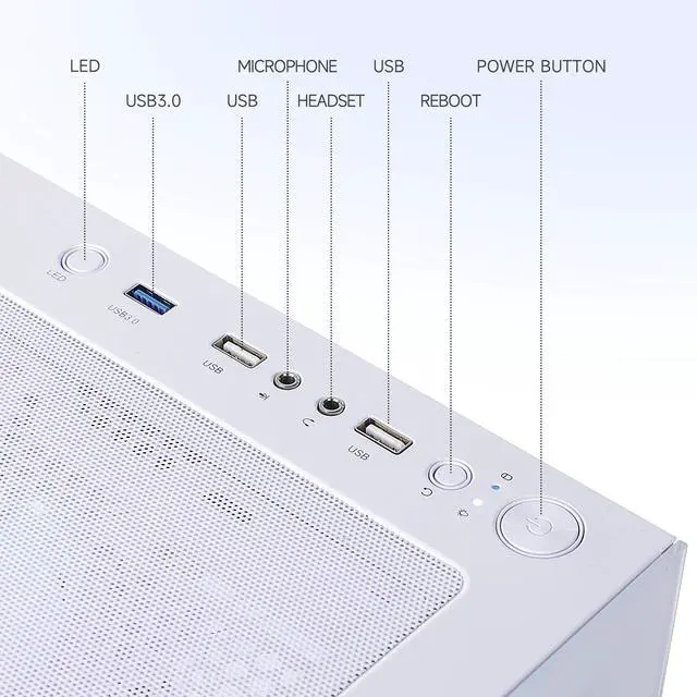 Connectivity:Front - 2 x USB 3.0 | 1 x USB 2.0 | HD-Audio & Mic ; Rear - 4 x USB 3.2 Gen 1 | 4 x USB 2.0 | 1×DisplayPort,1×HDMI | 1×RJ45