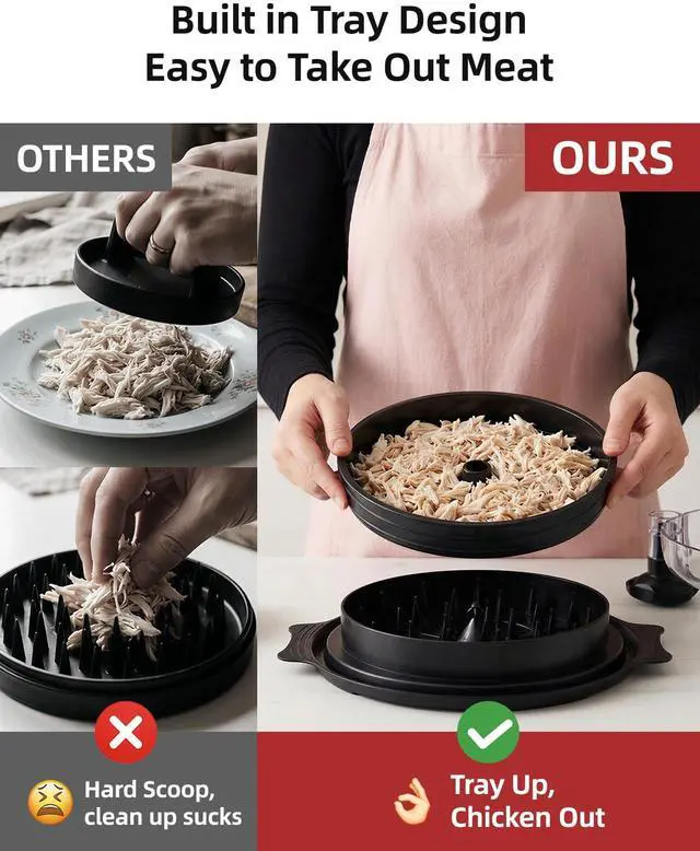 2026 Upgraded Chicken shredder With Tray ASHDOL meat shredder featuring an innovative three-layer structure, this chicken shredder includes a removable middle plate. This thoughtful design allows you to scoop out shredded meat effortlessly without taking the entire unit apart,Make cleaning easier as well,saving you significant time and effort during meal prep.