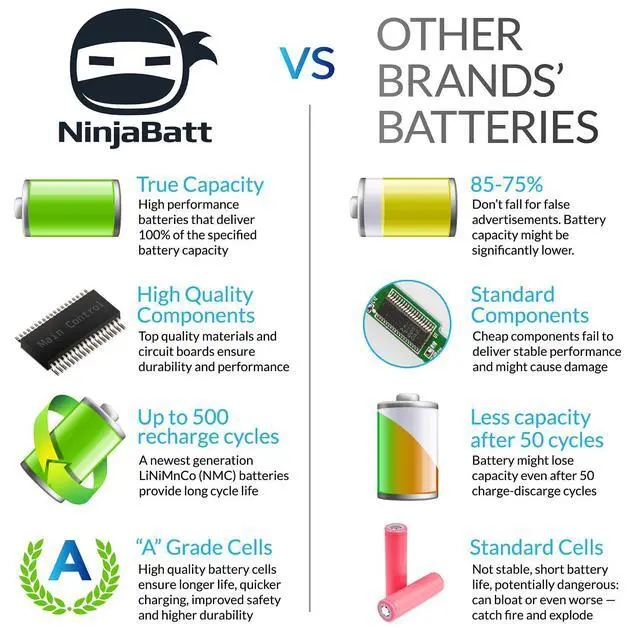 Our laptops have become essential to how we do business, communicate with friends, shop online and many more. That's why you need to treat your machine with Ninjabatt's high performance laptop batteries - batteries you can count on, batteries that can keep up with you and your schedule. Our laptop batteries are constructed to meet or exceed OEM specifications for safety and efficiency, yet we still managed to create an economical alternative to expensive OEM batteries. Packed with a ton of safety features - When it comes to laptop batteries - Ninjabatt is your best bet!