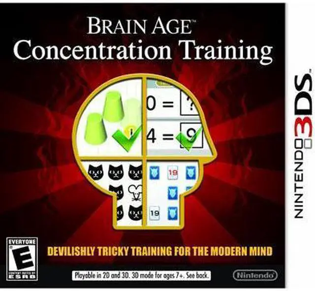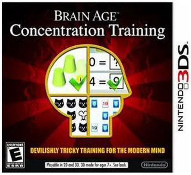 | Features | Brain Age is back with all-new devilishly difficult brain-training exercises designed by world-famous brain researcher Ryuta Kawashima, MD to refocus the modern mind. People today have numerous devices to stay connected (e.g. laptops, smart phones, tablets), and these distractions have led to an information overload making it difficult to stay focused on specific tasks. Brain AgeTM: Concentration Training brings newly designed training exercises that will challenge players with activities to help improve their concentration skills and the ability to access their short term memory. Spend at least 5 minutes a day to try and better your focus and attention skills. The new Devilish Training exercises dynamically increase or decrease in difficulty based on your real-time results to help consistently train players at the limit of their abilities. Beyond the Devilish Training, there are additional new and classic puzzles for every purpose to challenge one’s concentration or math skills, but also to provide relaxation activities to give the brain a break. |