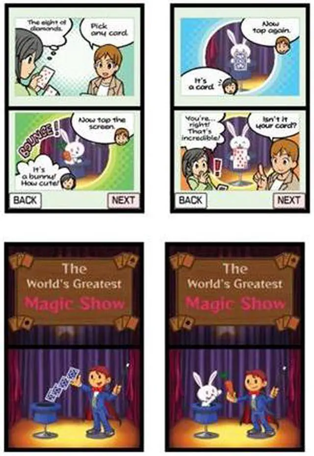 Magic Show: Leave your audience flabbergasted performing the tricks you've come to master. Where the DS was once your teacher, it is now your magical aide.