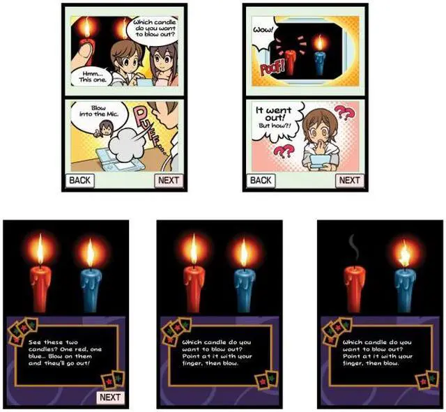 Interactive tricks make the DS your magic assistant. Draw; speak; tap; instruct; and blow in to the microphone to astonish your audience.