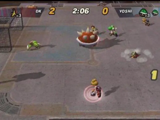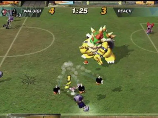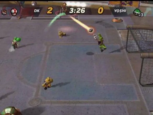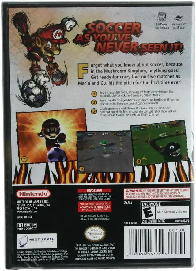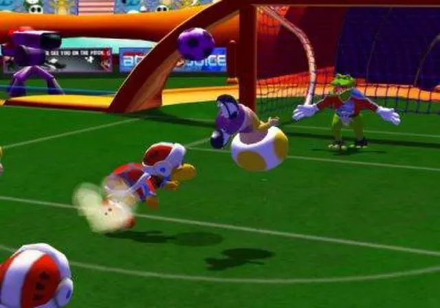 Nintendo’s foray into sports titles continues with Super Mario Strikers, a new soccer game that’s unlike anything ever to hit the pitch. Whether players are freezing their opponents with an ice-cold shell, unleashing a spiny shell on their hapless opponents or making entire teams flee in terror with a roving Chain Chomp, they’re sure to see something new around every corner kick.