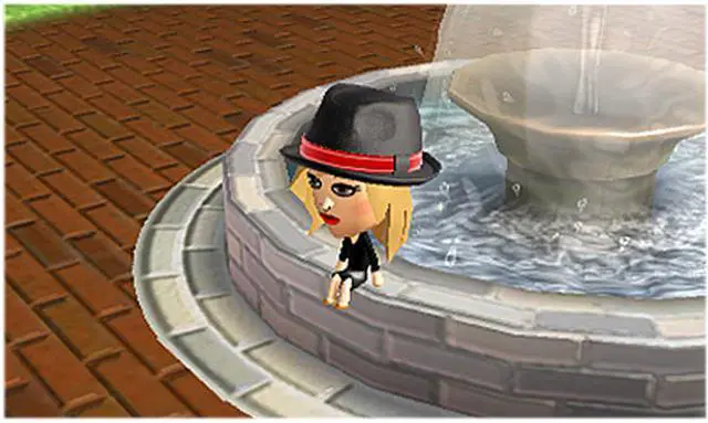 Christina rests by the fountain in Tomodachi Life.