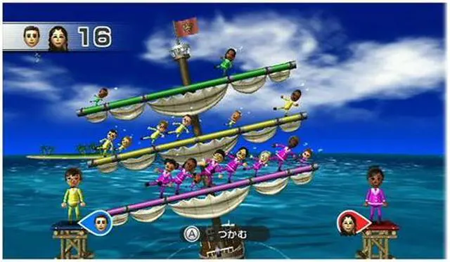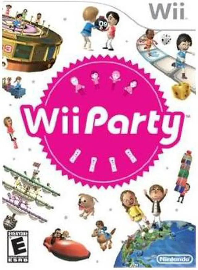 | Features | The Whole Family Stars in its Own Electronic Board Game Most video games require players to focus their attention on a screen. Now Nintendo brings the action into the living room with Wii Party, a game that changes the way people interact with other players. Featuring 13 different party game modes and 70+ minigames, Wii Party can be enjoyed by everyone in the family, regardless of age. Features Some of the 13 different party game modes take the fun out of the TV and into the living room. Players have to interact with one another in the real world to get the results they want in the game. Some House Party games include: Players place four Wii Remote™ controllers on a table. Each one emits a different animal noise. Players win the round by being the first to grab the controller that is making the sound of the animal shown on the TV. Players use Wii Remote controllers to play hide and go seek. One player asks the other players to leave the room and then hides all of the controllers around the living room. When the other players return, they have to find them. Wii Party features Mii™ characters in minigames in which up to four people can play together. Each player uses only the Wii Remote controller. Some of the party game modes are cooperative, such as “Balance Boat.” Others are competitive, such as “Board Game Island.” In Board Game Island mode, players help their Mii characters compete in more than 70 different minigame Mii characters ride a rollercoaster while players try to shoot down floating balloons containing gifts. |