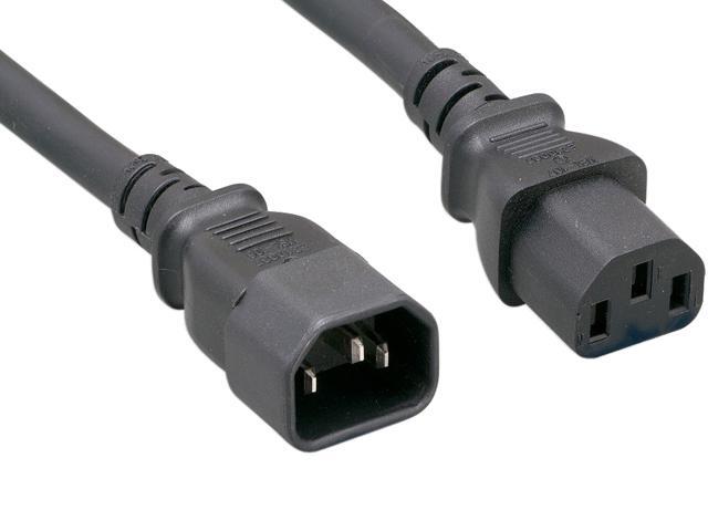Nippon Labs 14 AWG IEC320 C13/C14 AC Power Cord Extension, SJT, 15A/250V, IEC-60320-C14 to IEC-60320-C13, 1ft. Black Power Cable