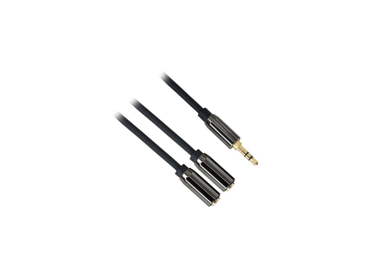 Nippon Labs 50S3H-Y-1-BK 1 ft. 3.5mm (1/8 inch) TRS Stereo Male to 2 Female Cable, Metal Shell, Gold Plated, OD: 4.00mm - Black