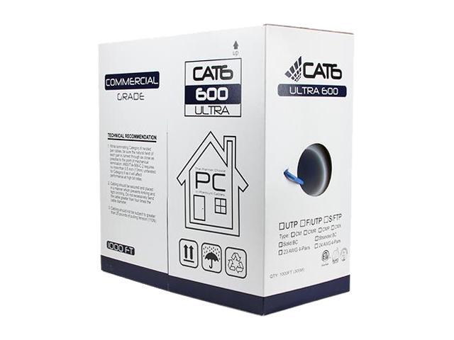 Nippon Labs CAT6 UTP Bulk Ethernet Cable, Solid Copper 23 AWG, CM Rated, 600MHz, 1000' Pull Box (ETL) - Black 1000ft.Lan Cable