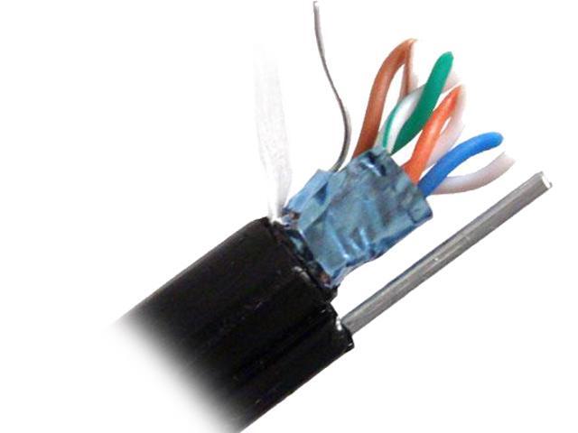 Nippon Labs CAT5E STP (Shielded) Outdoor Bulk Ethernet Cable w/ Drain Wire, w/ Messenger, Outdoor PE Jacket, 24 AWG, CMX, Wooden Spool, Aerial Shielded Solid Copper CMX, 1000 ft. Black Networking Cable