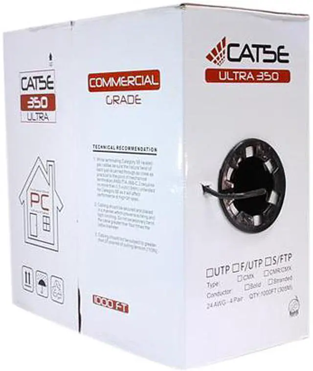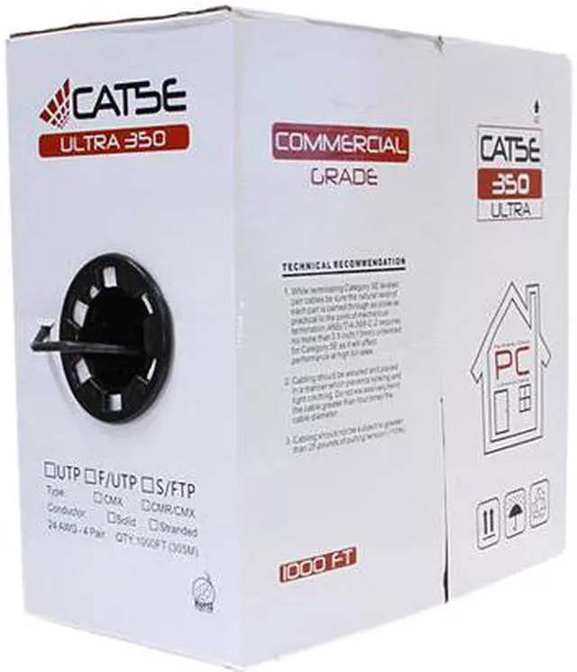 | Features | High-Performance Data Communications Cable This Cable Is CAT5E Outdoor CABLE UV Rated for Outdoor Use Suitable for 350MHz High-Speed Data Applications, Gigabit Ethernet, Fast Ethernet and 155Mbps TP-PMD/CDDI Designed for Outdoor Installations UV Jacket (CMX) (UV) Category-5E Unshielded Twisted Pair (UTP) Cable 4-Pair Easily Identified Color Striped Pairs 24 AWG Solid Bare Copper Conductors Excellent Attenuation and Crosstalk Characteristics Exceeds EIA/TIA 568 C.2 UL/cUL Listed ETL Verified RoHS Compliant Sequential Length Markings on Jacket Supplied in a 1000' Pull Box with large payouts |