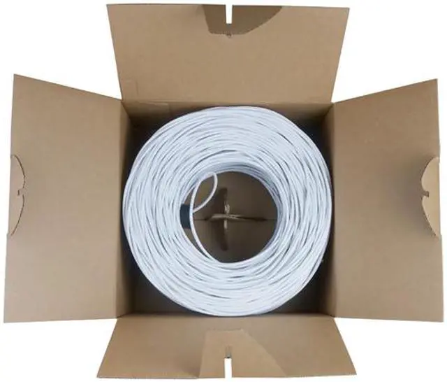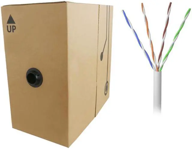 Manufactured in accordance to ANSI/TIA-568-C.2 standards, these Category 5e (Cat5e) solid wire cables are used for horizontal and backbone cable runs and come in a bulk spool of 1000ft, inside a pull box for efficient cable runs. Additionally, 2ft increments are marked on the cable for keeping track of the usage.