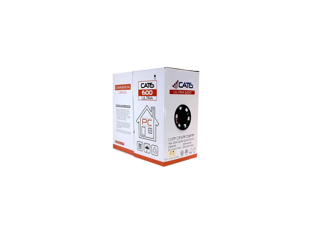 Nippon Labs CAT6 Bulk Riser Ethernet Cable, CMR UL Listed Solid Copper UTP, 600MHz, 23 AWG 1000' Pull Box - Yellow 1000FT Lan Cable