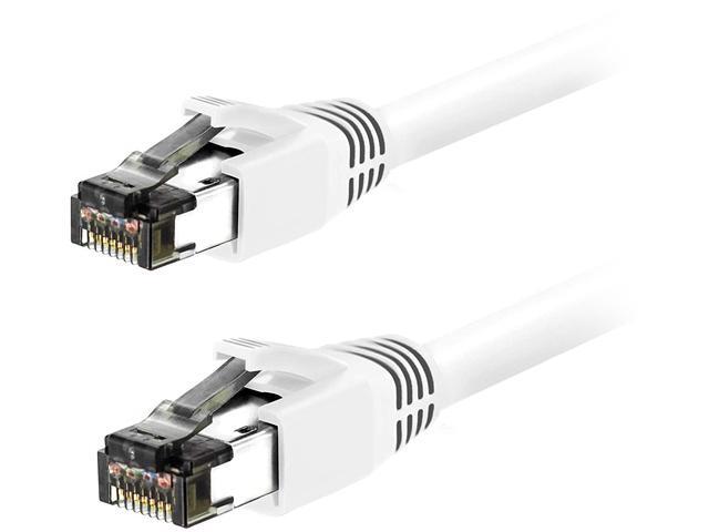 Nippon Labs 60CAT8-15-24WT-10P Cat8 Ethernet Cable 15 feet, White - 2GHz, 40G, 24AWG, S/FTP - Shielded Latest 40Gbps 2000Mhz SFTP Patch Cord, Heavy Duty High Speed Cat 8 LAN Network RJ45 Cable