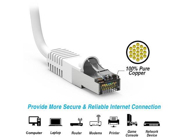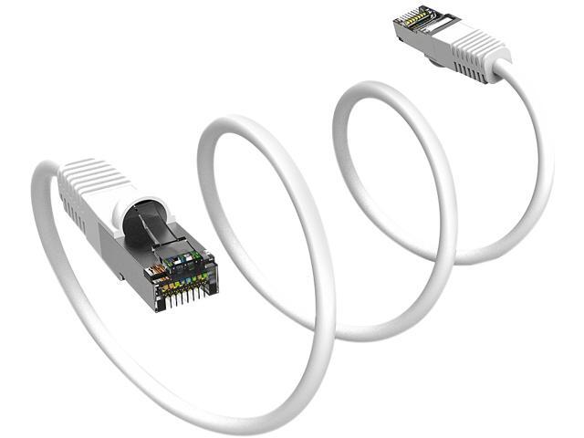 Nippon Labs Cat7 Shielded (SSTP) 600MHz Ethernet Network Booted Cable, 26AWG 2 Feet Gigabit LAN Network Cable RJ45 High Speed Patch Cable, White, 60CAT7-2WT