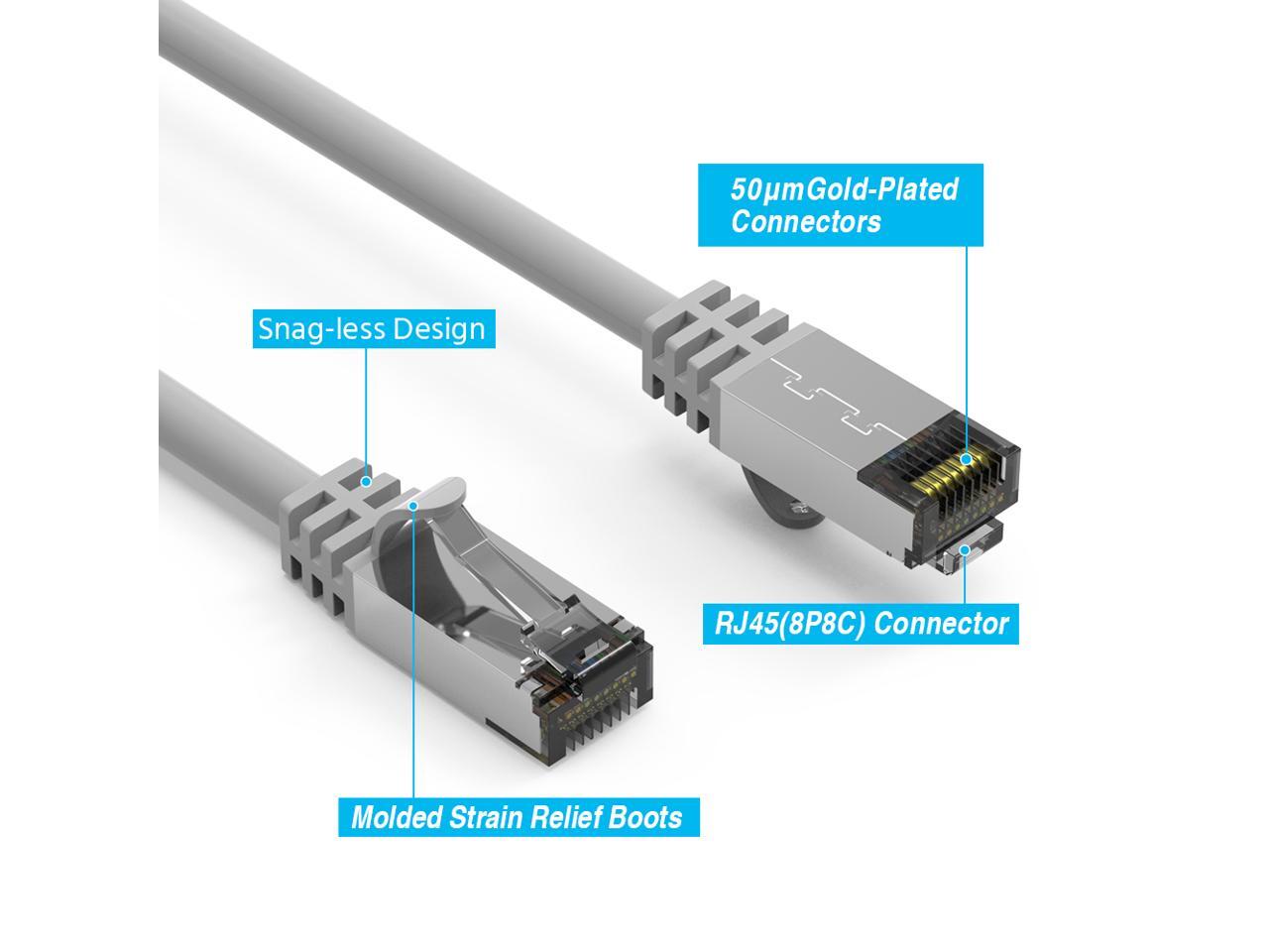 This Cat8 cable is well constructed with pure copper core,aluminum foil shield, woven mesh shield, PVC outer cover and two gold-plate rj45 connector. It’s more durable & flexible for heavy duty work. And it is suitable for both outdoor and indoor use.