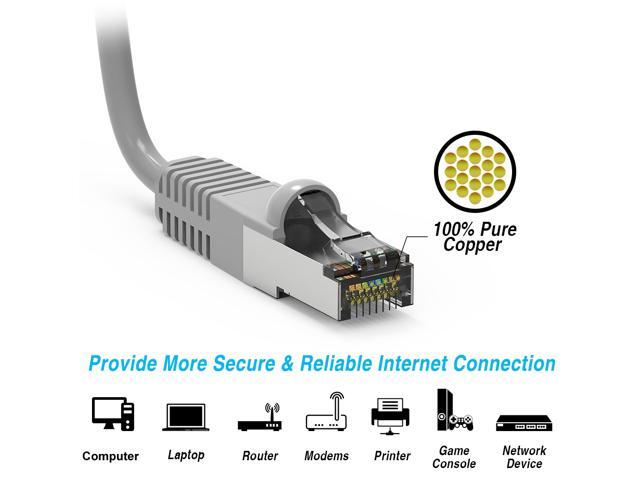 Nippon Labs Cat7 Shielded (SSTP) 600MHz Ethernet Network Booted Cable, 26AWG 40 Feet Gigabit LAN Network Cable RJ45 High Speed Patch Cable, Gray, 60CAT7-40GY