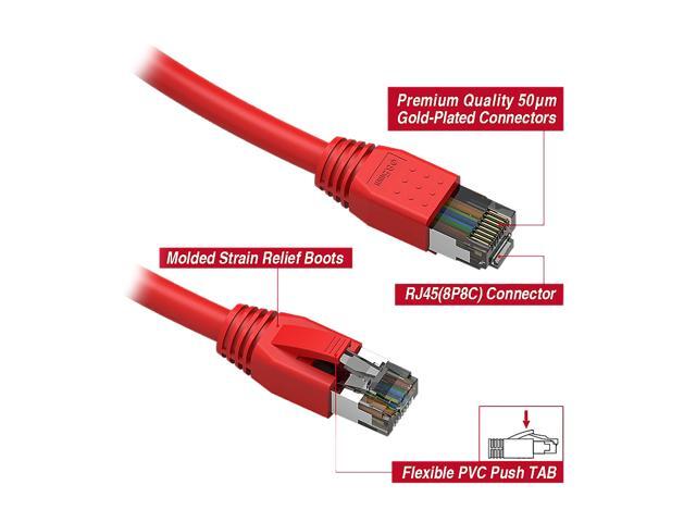 Nippon Labs 60CAT8-50-24RD-10P 50 ft. Cat 8 Red 2GHz, 40G, 24AWG, S/FTP - Shielded Latest 40Gbps 2000Mhz SFTP Patch Cord, Heavy Duty High Speed Cat 8 LAN Network RJ45 Cable - in Wall, Outdoor for Router, Modem, Gaming etc. - 10 Packs