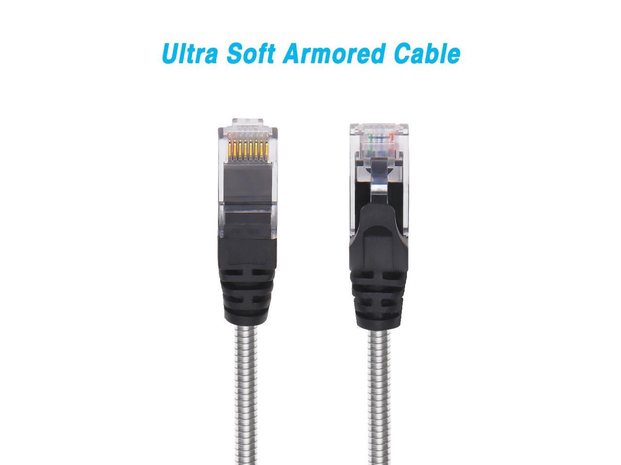 Nippon Labs 65FT CAT.6A Patch Cable Armored Anti-Rodent Slim Cables, 28AWG 65 Feet Gigabit LAN Network Cable RJ45 High Speed Ethernet Cable 60CAT6A-65-28AM