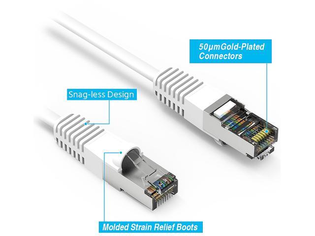 Nippon Labs Cat7 Shielded (SSTP) 600MHz Ethernet Network Booted Cable, 26AWG 7 Feet Gigabit LAN Network Cable RJ45 High Speed Patch Cable, White, 60CAT7-7WT