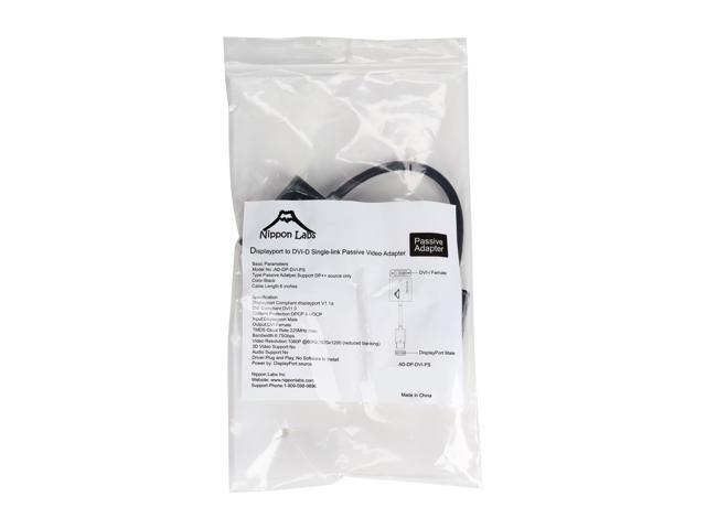 Nippon Labs AD-DP-DVI-PS 6" DP DisplayPort Male to DVI Female 1080P Passive Adapter Converter - OEM