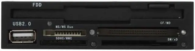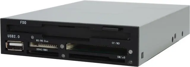 | Features | Material: Metal & plastic case, panel Floppy Drive High Speed USB2.0 transmission All-in-one card reader Fully compliant with USB 2.0 specification Color: Black Support Windows 2000/ME/XP; Linux 2.4; Mac. OS 9x or higher |