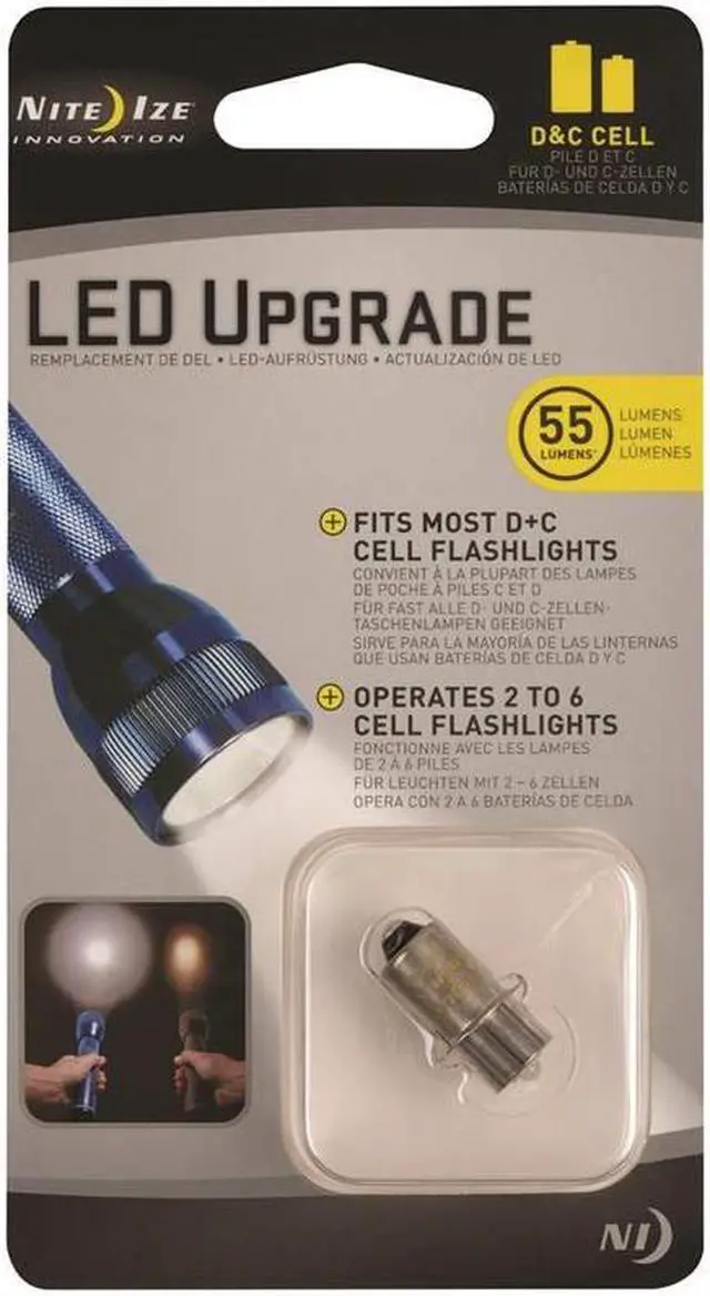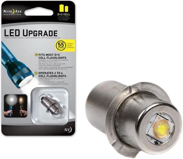 The Nite Ize LED Upgrade Kit converts most C & D (2-6 cell PR style flange) incandescent flashlights into bright, long lasting (100,000 hour) LED flashlights. It's as easy as replacing the bulb - instantly, your flashlight will emit a pure white (as opposed to the incandescent dull yellow) light, in spot to flood focus. Self-adjusting for all capacity levels, this efficient LED technology also ensures a much longer battery life, making it not only a useful, versatile improvement, but an environmentally-friendly & pocketbook-friendly one as well.