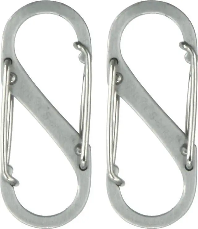 Double Carabiner, Double Gated, S Type, Overall Length 1 19/32 in, Stainless Steel, Width 25/32 In., Size 1 9/16 in, Package Quantity 2. This item has been restricted from sale in the following state (s): []