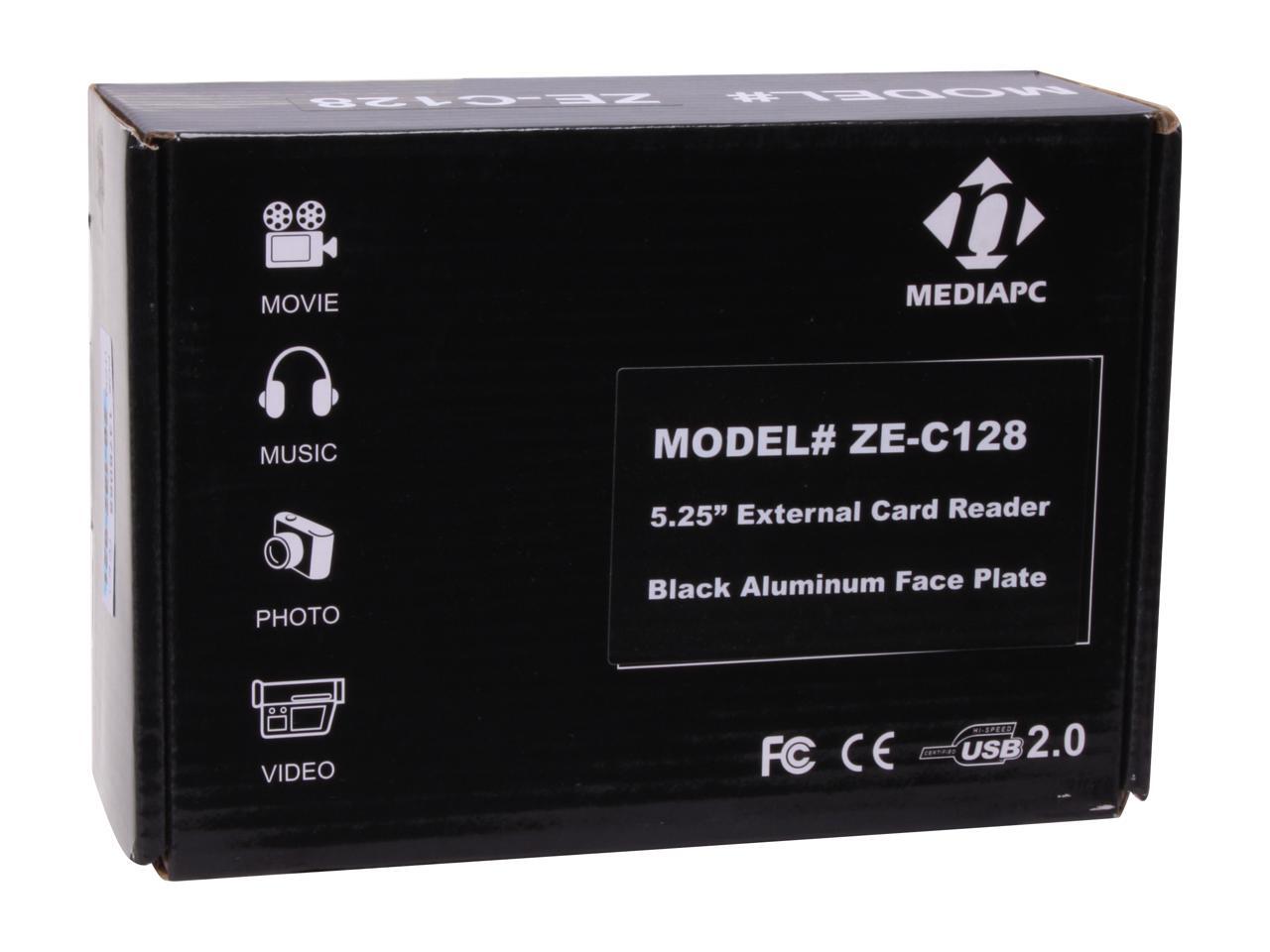 nMEDIAPC ZE-C128 USB 2.0 Black Aluminum Panel 5.25"All-in-one USB x 3 / IEEE 1394 / eSATA / HD (or AC97) Audio Internal Card Reader