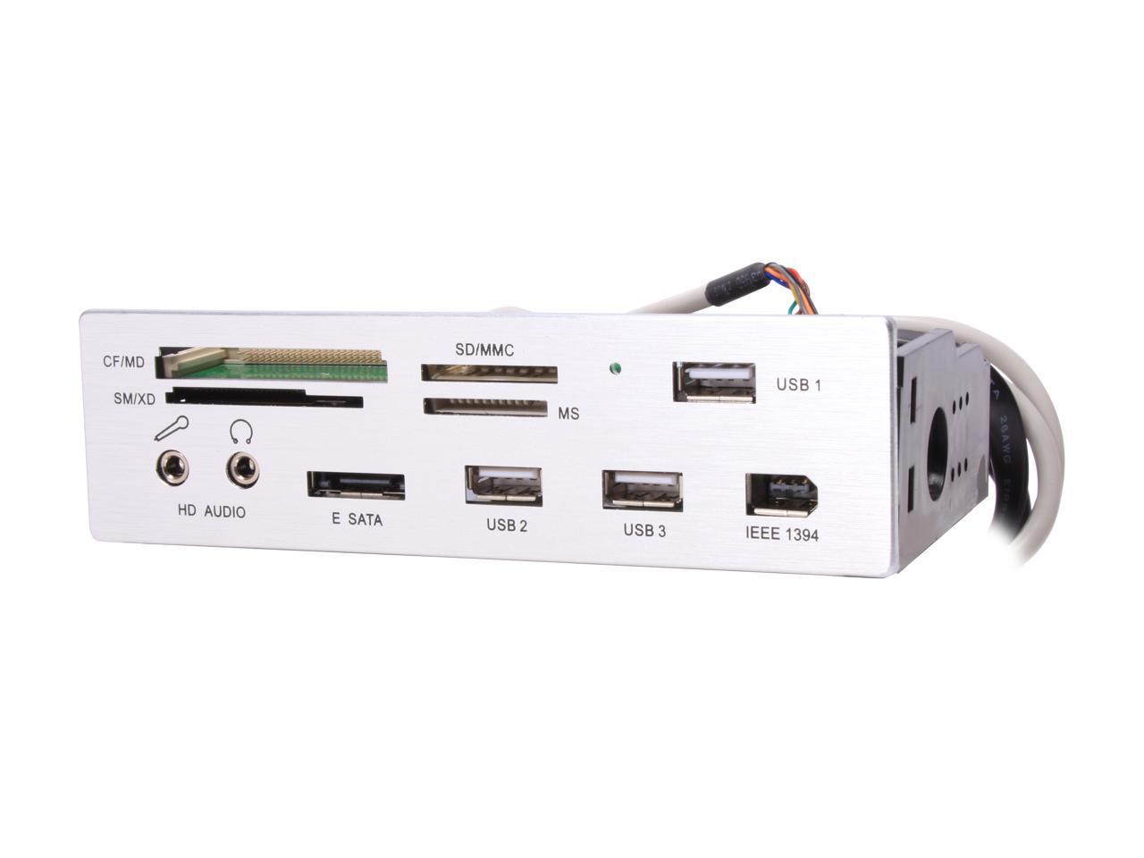 nMEDIAPC ZE-C138 Silver Aluminum Panel 5.25"All-in-one USB X 3 / IEEE 1394 / eSATA / HD (or AC97) Audio Internal Card Reader