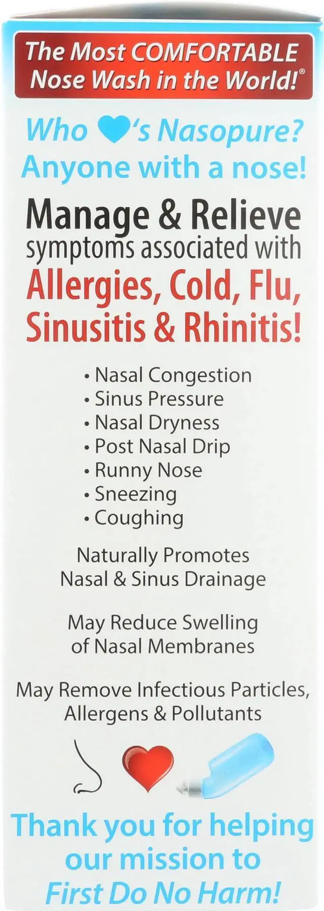As a company, we want to help you to avoid over-medication and manage nasal symptoms naturally. It is very easy to learn how to wash with Nasopure, even a two-year-old can do it. Just add nasal washing to your hygiene routine and start enjoying the fresh, healthy feeling in your nose!