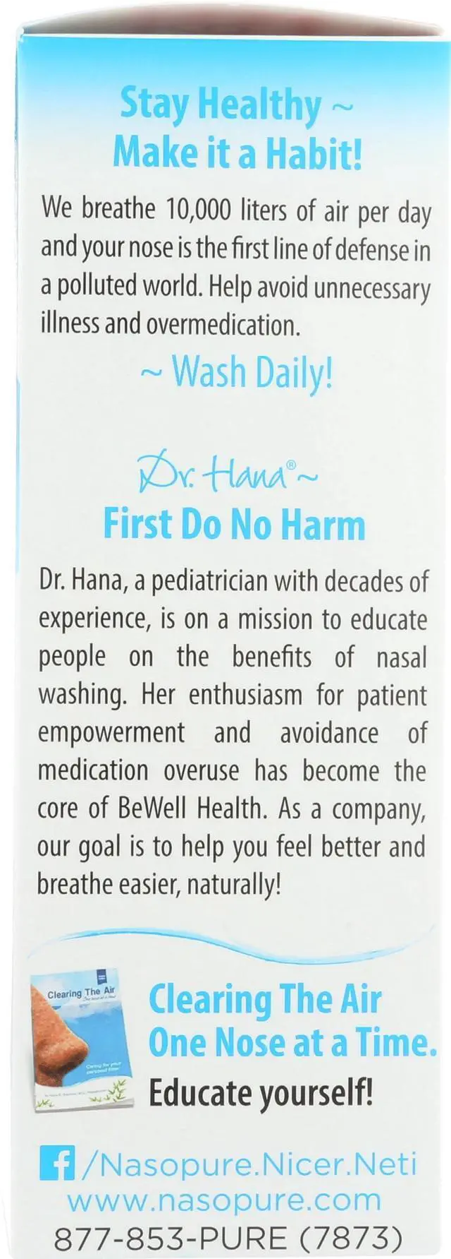 BeWell Health, LLC is home to Dr. Hana’s Nasopure, The Most Comfortable Nose Wash in the World! Our mission is “First Do No Harm” and we embrace this approach in everything we do. Dr. Hana’s 30+ years of experience as a pediatrician went into developing and inventing the only nasal wash on the market designed to be comfortable enough for ages 2 - 102+ years old!