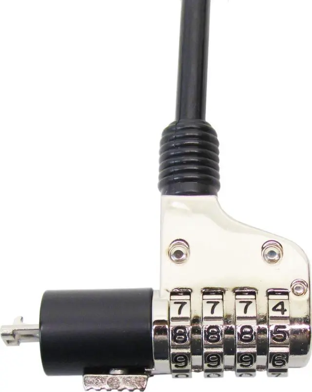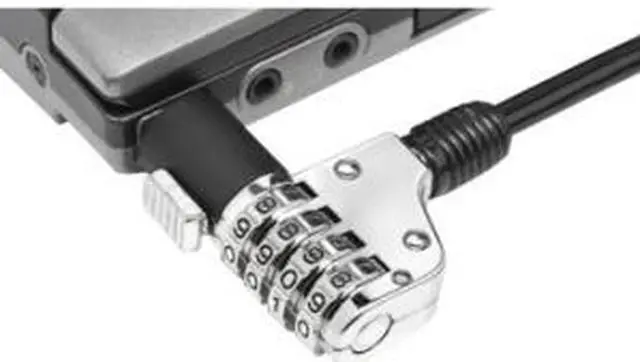 The four dial combination notebook lock protects notebooks/docking stations, desktops, flat panel monitor of all major Manufacturers utilizing built in security slot. Easy to install. Reprogrammable combinations with up to 10,000 possible settings.