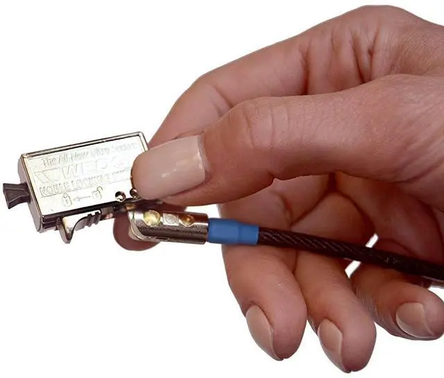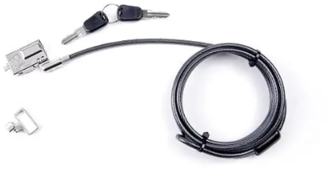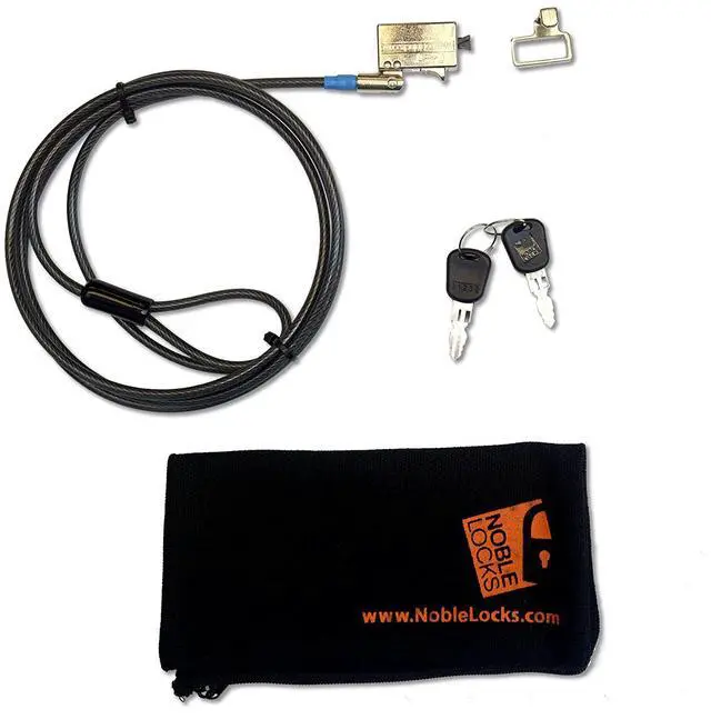 With a simple push of a button, the wedge lock secures laptops, tablets and any other device with the ultra secure patent-pending Noble Security Slot. kit includes Wedge Profile Lock, 6' reinforced steel cable, patented peripheral trap, and keys. Wedge Profile lock does have master key support.