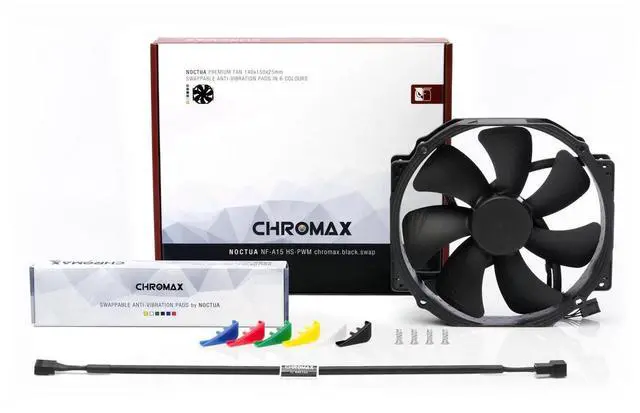Having received more than 100 awards and recommendations from international hardware websites and magazines, the NF-A15 is one of Noctua’s most renowned and popular 140mm fans. Its 150mm wide round frame with 120mm standard mounting holes (105mm hole spacing) makes it ideal for use on CPU coolers such as the popular NH-D15, NH-D15S or NH-U14S. The chromax.black.swap edition combines the NF-A15’s signature quiet cooling performance with an attractive all-black design and a bundle of swappable red, white, blue, green, yellow and black anti-vibration pads that allow the colour-customisation of the fan to match individual build colour schemes. For further customisation, a wide range of accessories such as coloured cables and anti-vibration mounts are available separately. Topped off with Noctua’s trusted premium grade SSO2 bearing, more than 150,000 hours MTTF and 6-year manufacturer’s warranty, the NF-A15 HS-PWM chromax.black.swap is the perfect choice for all users who value individual, focused build aesthetics just as much as class-leading quality and performance.