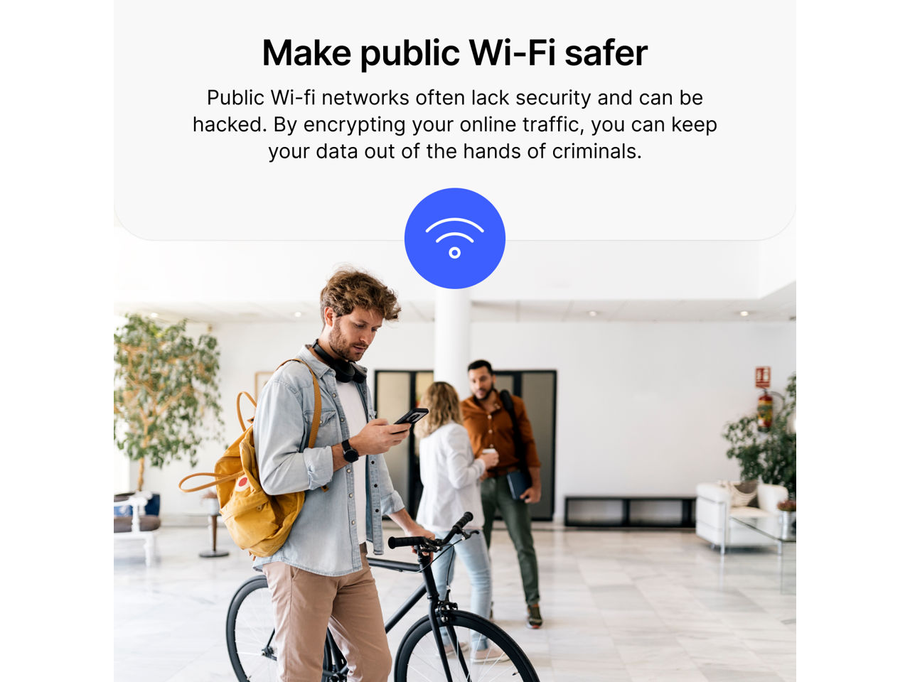 - Make public Wi-Fi safe to use. Work, browse, and play online safely while connected to free Wi-Fi hotspots at your local cafe, hotel room, or airport lounge.