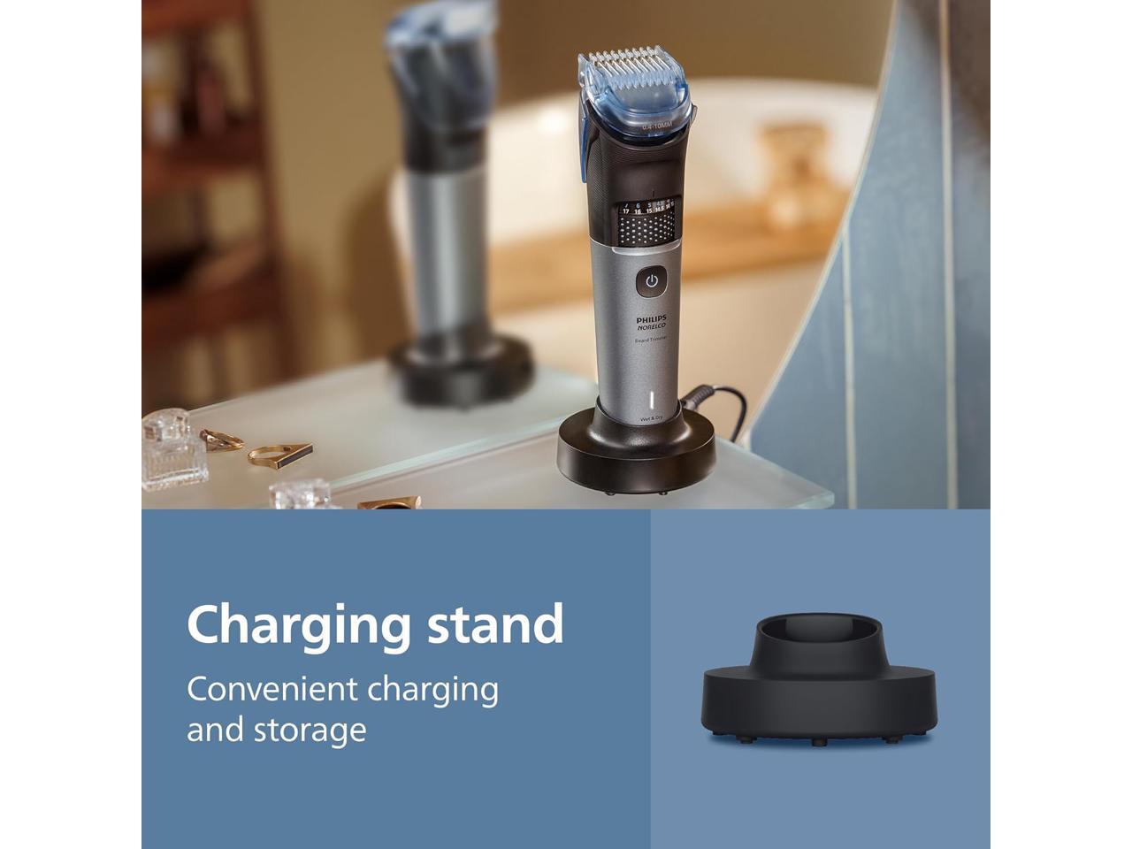 Philips Norelco Beard Trimmer 7000 Series, 100% Waterproof Trimmer for Men, 40 Lock-in Hair Length Settings, BeardSense Power Adaptability, Detail & T-Blade Trimmer Heads, Charging Stand, BT7670/40