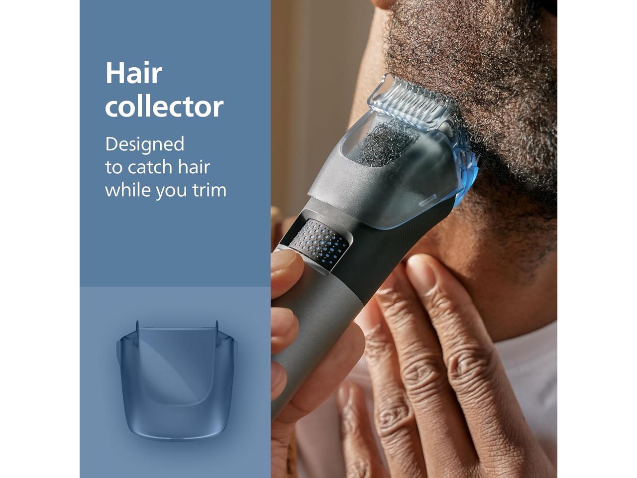 - EFFICIENTLY CATCHES UP TO 80% OF TRIMMED HAIRS¹ with innovative beard grooming hair mess collector for less routine hassle