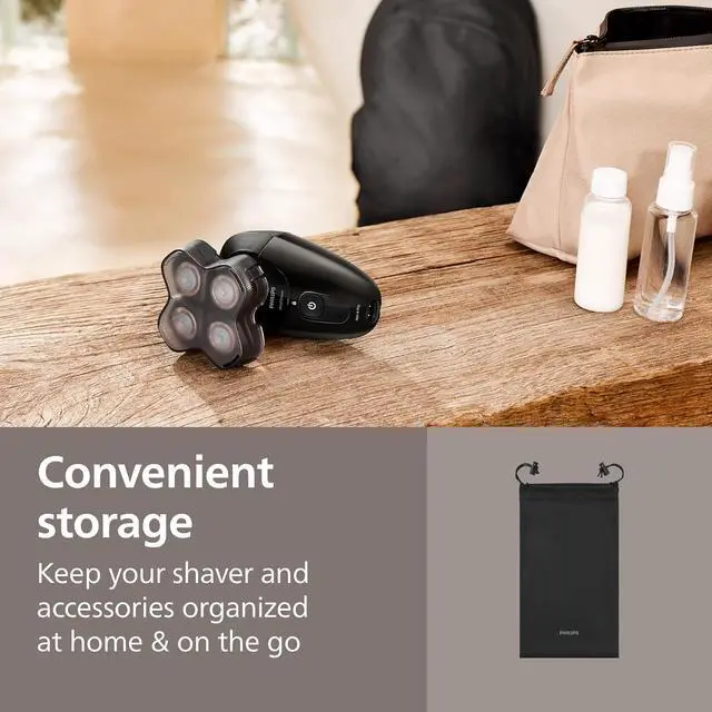 | Features | Clean shave, gentle on skin The Philips Norelco Head Shaver Pro 5000 Series is designed for a close shave and is gentle on skin. The advanced 360° Flexing head adapts to the shape of your head with contour following, while the ComfortCut blades ensure a close, even cut in any direction. From America’s #1 electric shave and grooming brand* The Philips Norelco Head Shaver Pro 5000 Series is designed for a close shave that’s also comfortable on the skin. This is the perfect tool for those who want to look sharp, feel confident, and express themselves fully. Cut hair in any direction with 360-degree flexing head Fully flexible unit turns 360° to follow head contours for optimal skin contact even in difficult areas, avoiding excessive pressure peaks that may cause discomfort & irritation. Smooth and Gentle Shave with ComfortCut Blades Get a clean, comfortable shave with this Philips Norelco shaver. This electric shaver's 36 ComfortCut blades cut each hair right above skin level to give you a smooth and even finish. Designed for Comfort with an Ergonomic Grip Confidently handle your shaver with the ergonomic design that helps you keep a secure grip as you shave. Smart PowerAdapt Sensor for Effortless Shaving Dynamic Power Adapt Sensor reads hair density 125 times per second. Dynamically adapts shaving power for effortless shaving. Hair Collect System keeps your shave clean Keeps your shave clean without leaving cut hairs around the sink. Fully washable and showerproof Choose a shaving routine that suits you. With Wet & Dry you can opt for a comfortable dry shave or a refreshing wet shave. You can shave with gel or foam, even in the shower. 60 minutes of cordless shaving after a full charge Use your shaver at home or on-the-go for up to 60 minutes on a 1 hour charge - that’s around 15 shaves. The shaver only operates when not charging |