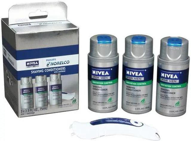 Welcome to a new level of shaving and skin care. This formula is enriched with Natural MICRO tec to sooth and moisturize your skin while shaving with the Philips Norelco NIVEA FOR MEN shaver. It protects the skin against irritation for a healthy look. The pack contains replacement cartridge.