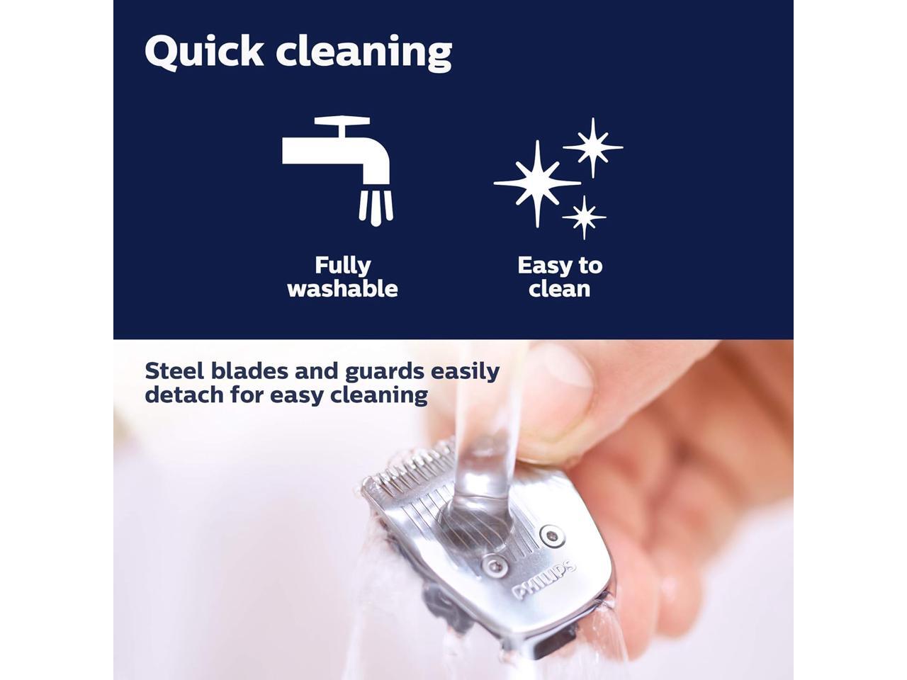 - Easily clean blades and guards by detaching from handle and rinsing under water