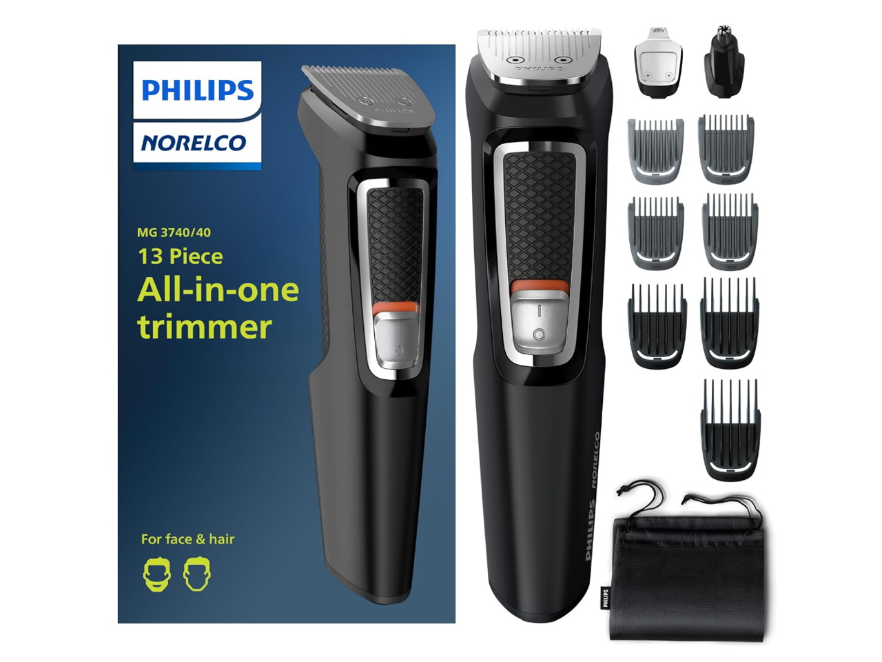 Philips Norelco Multi Groomer - 13 piece Mens Grooming Kit for beard, face, nose, and ear hair trimmer and hair clipper - NO BLADE OIL NEEDED, MG3740/40