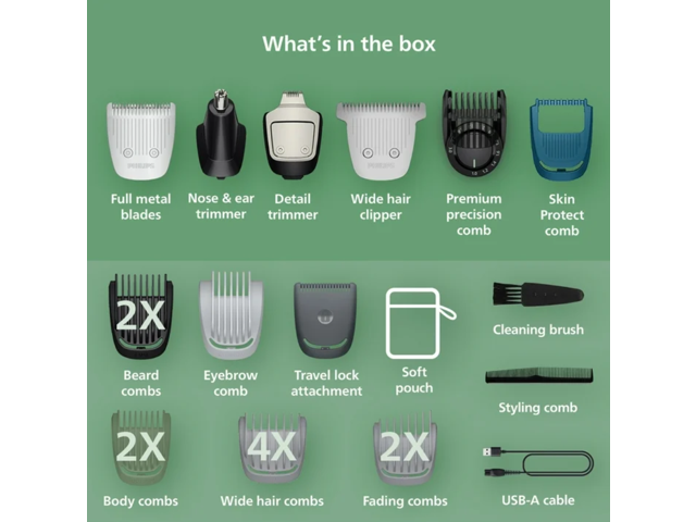 Philips Norelco All-in-One 7000 Series 22-Piece Trimmer - Electric Shaver and Clipper for Face, Beard, Hair & Body, Self-sharpening Full Metal Blades, 25 Length Settings (0.5-16 mm), MG7965/49