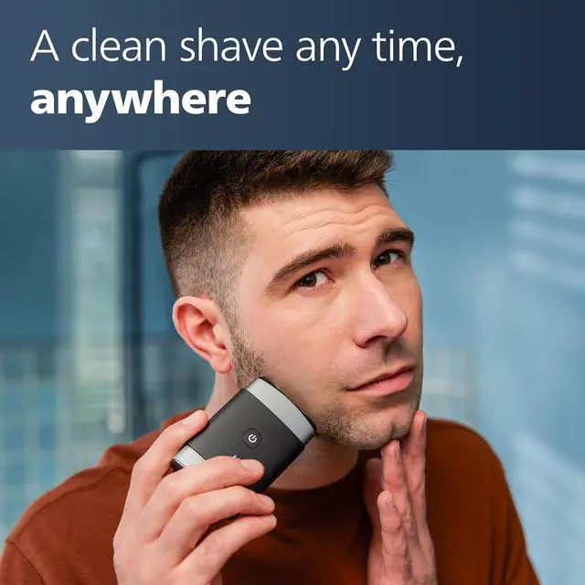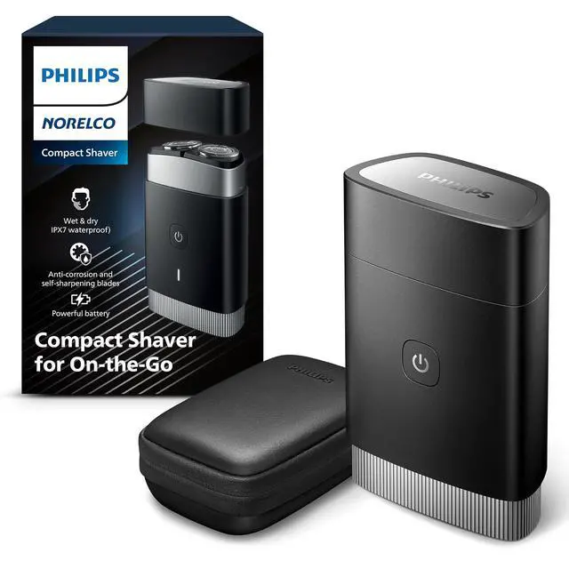 Philips Norelco Compact Portable Men's Travel Electric Wet & Dry Facial Shaver, Rechargeable for On-The-Go, 2 Month Battery Life on 1 Charge, Waterproof, with Travel Case & Protective Cap, PQ888/81