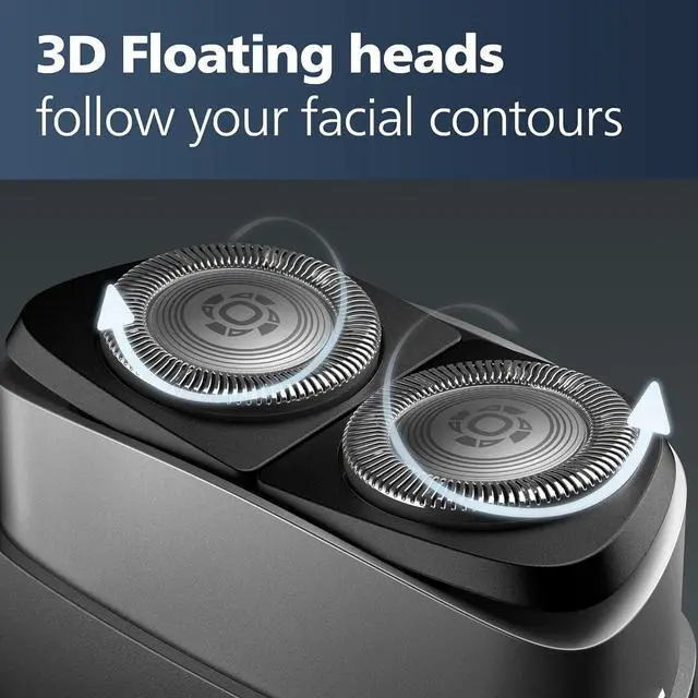 • Follows the contours of your face with 3D Floating Heads: the shaver heads float in 3 different directions, following your facial contours for a clean shave, even in difficult-to-reach areas.